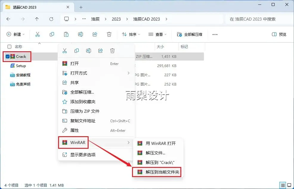 8.返回安装包;右键【Crack】选择【解压到当前文件夹】