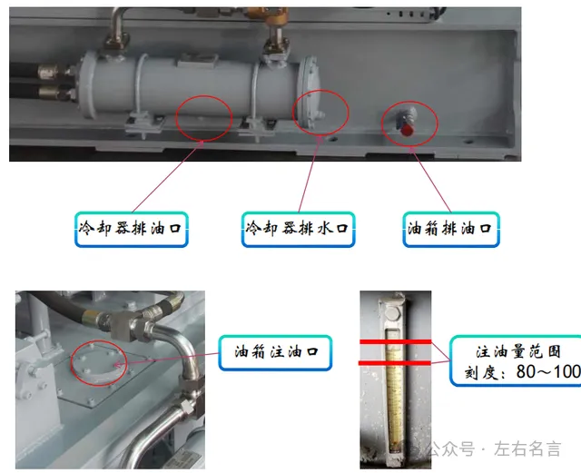 当在冬季环境温度<-10℃时,停机后必须将油冷却器中的冷却水和油同时排尽。