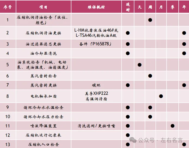 过程中必须监控压缩机的运行数据。压缩机巡检表见附表。