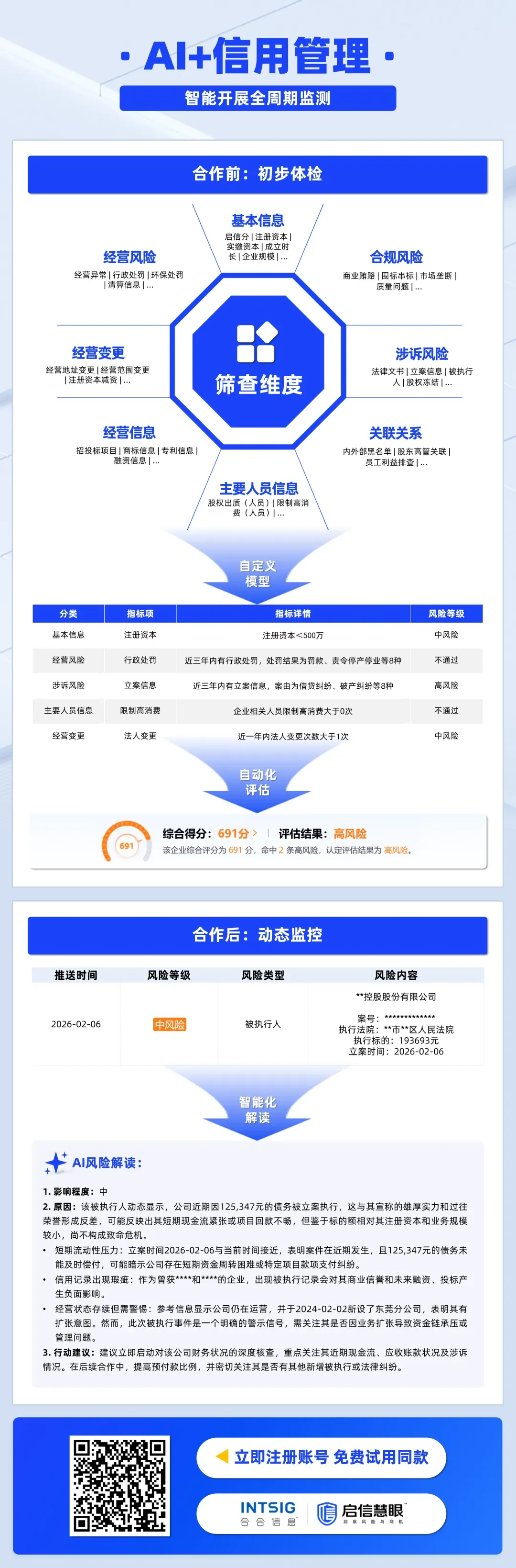 传统信用管理最大的痛点是静态——企业投标时查一次,之后什么动态都不知道。