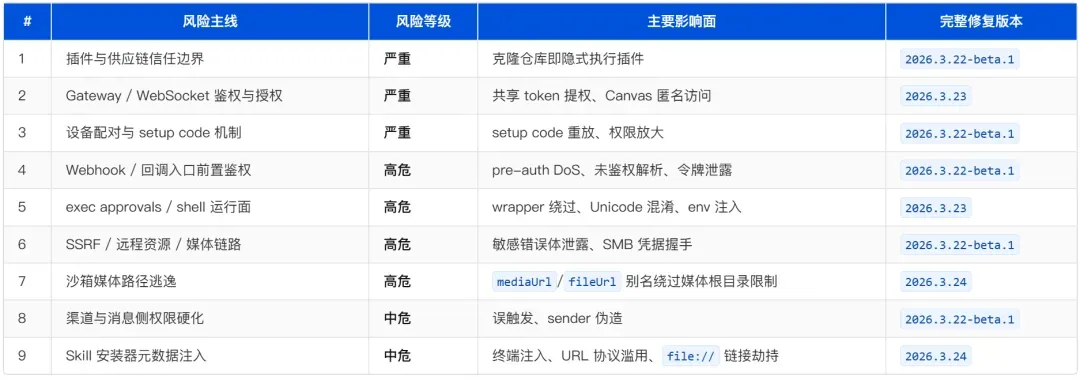 OpenClaw 近期安全风险全梳理:插件执行、权限提升等漏洞已修复