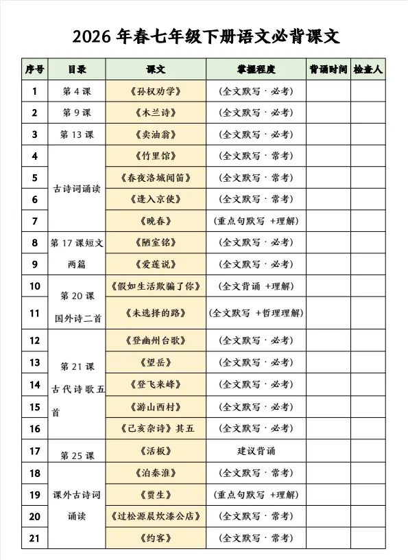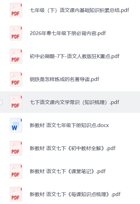 26春七年级下册语文知识点汇总,PDF电子版(附获取方式)