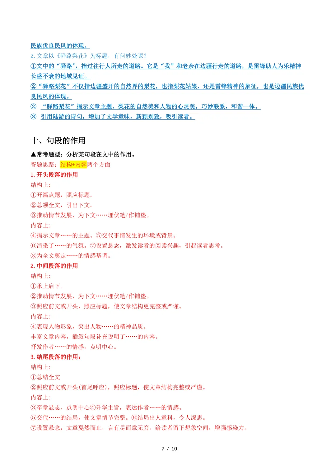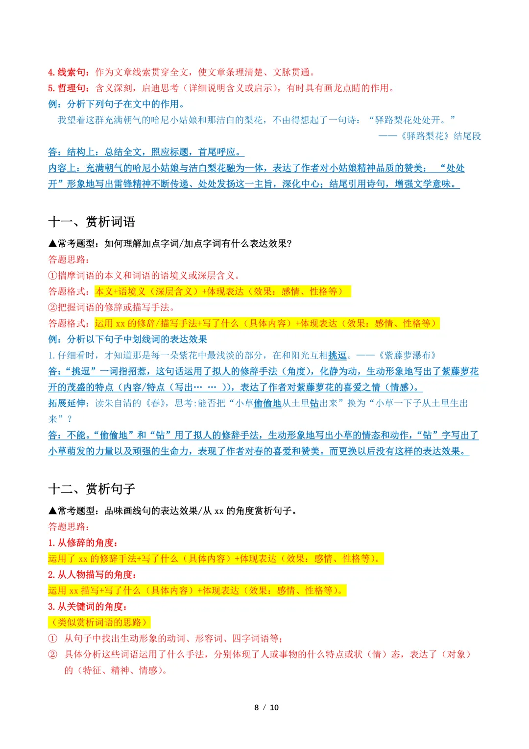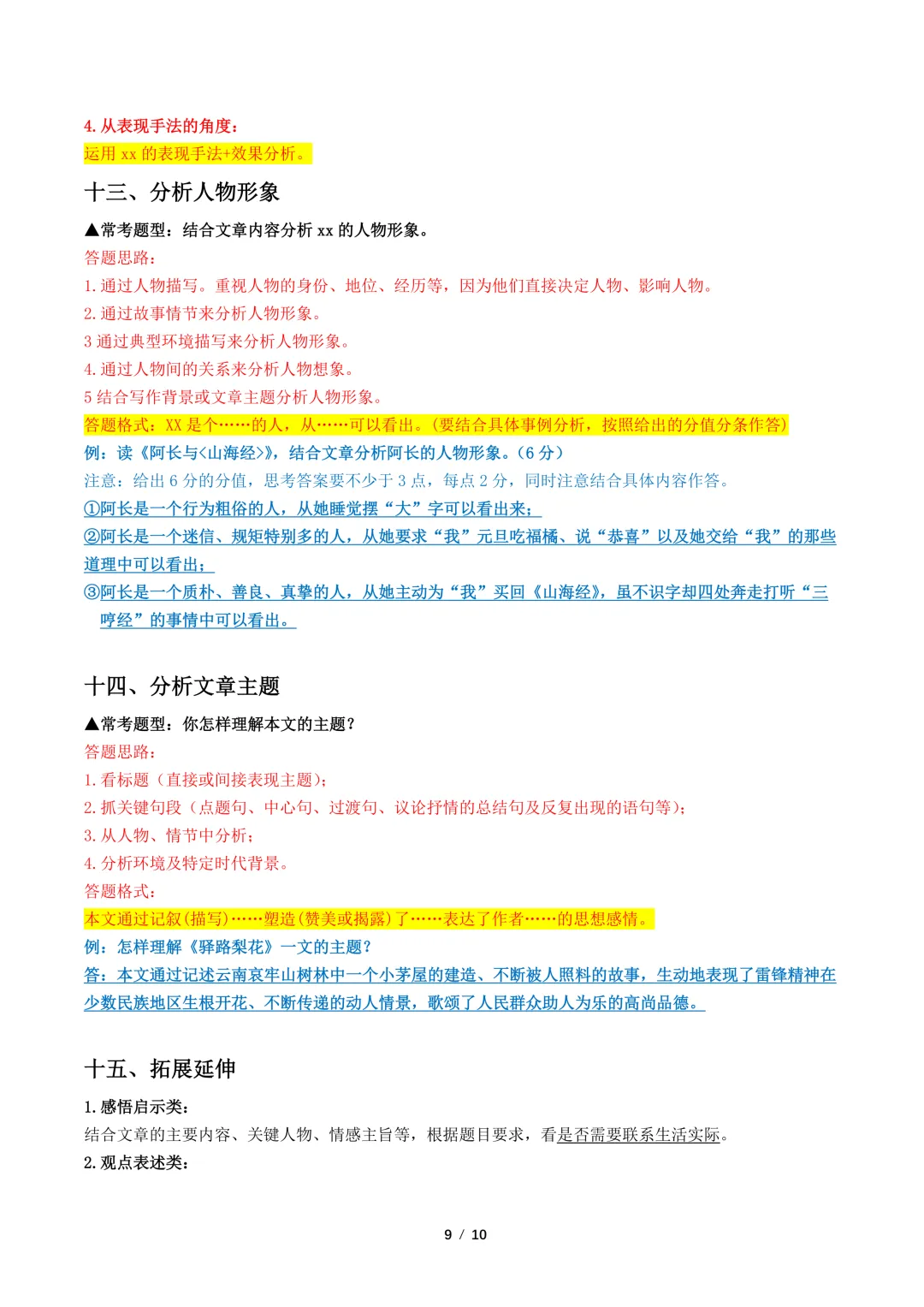 【免费下载】中考语文文学类文本常见考点解读