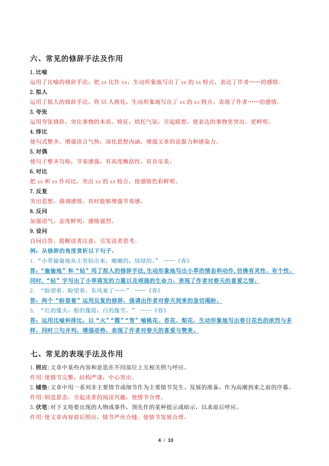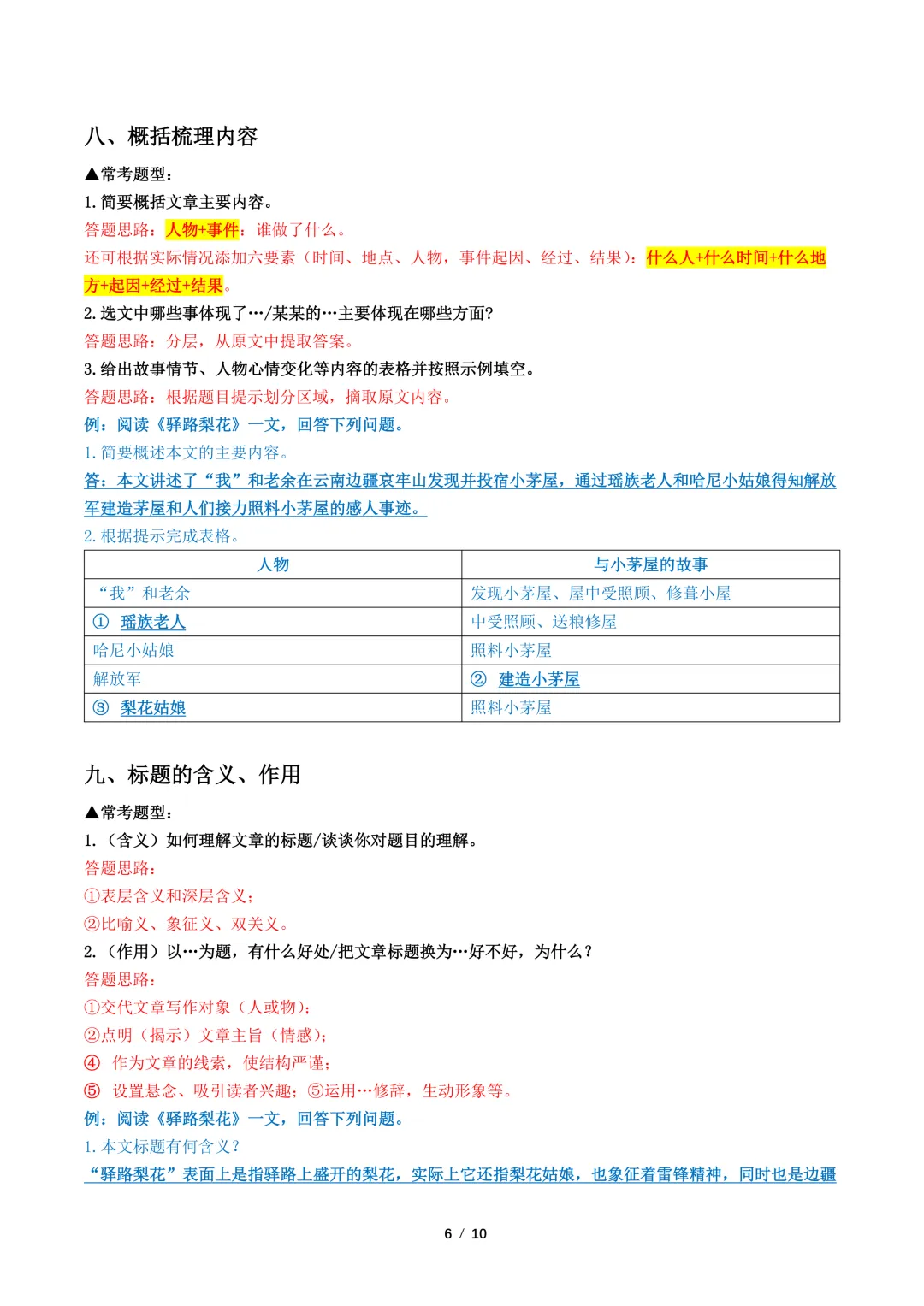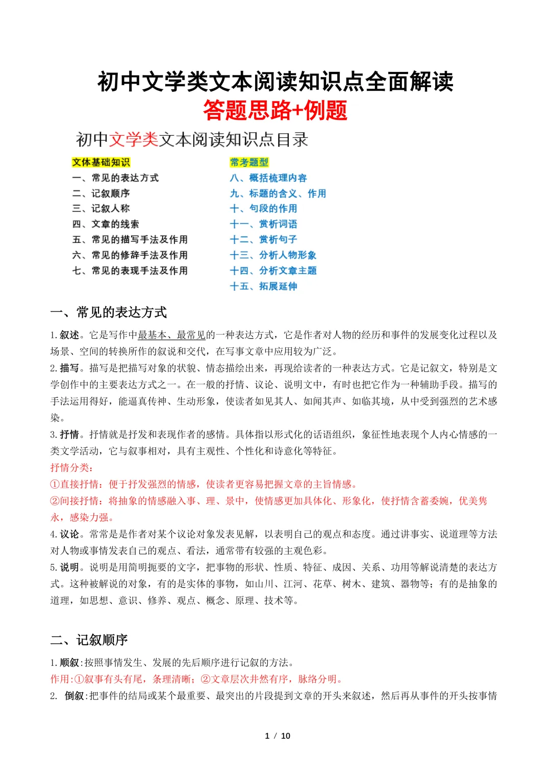 【免费下载】中考语文文学类文本常见考点解读
