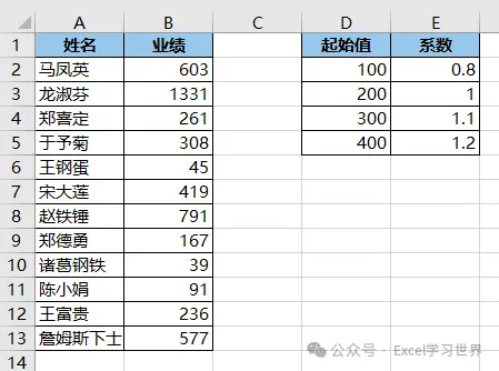 Excel 按区间计算奖金系数,用了这个函数后匹配一下就出来了