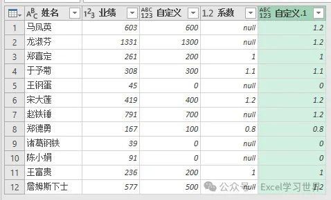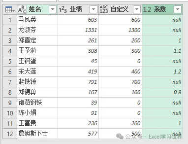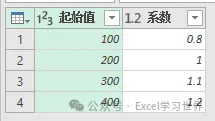 绿色的表格就是按区间匹配的系数。如有数据更新,可以刷新表格自动更新结果。