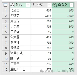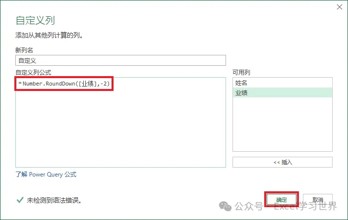 由于“业绩”列是整数,所以就将个位和十位向下取整后变成 0