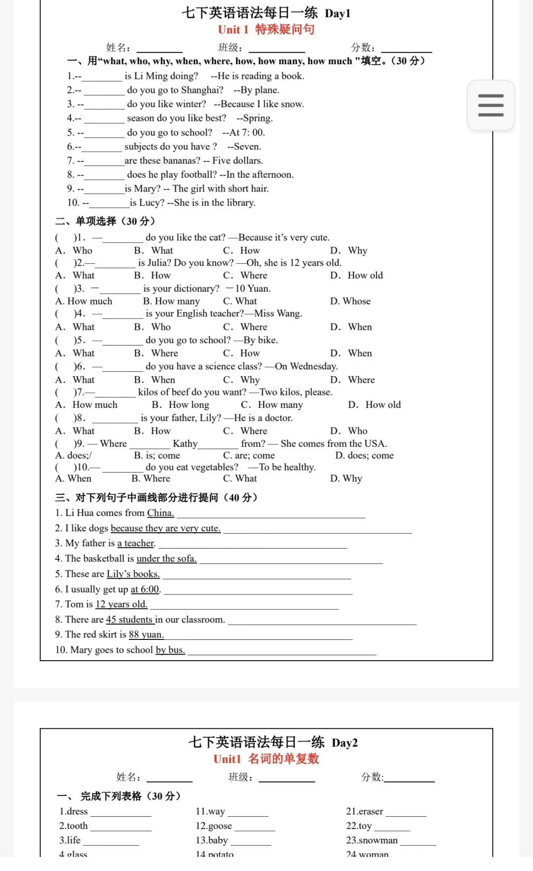 (电子版可下载打印)2026版初中英语语法每日一练(七八九下)