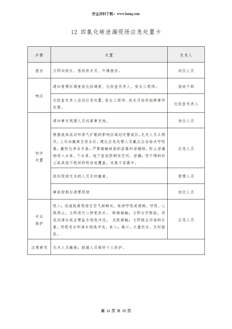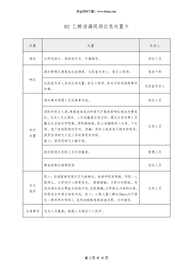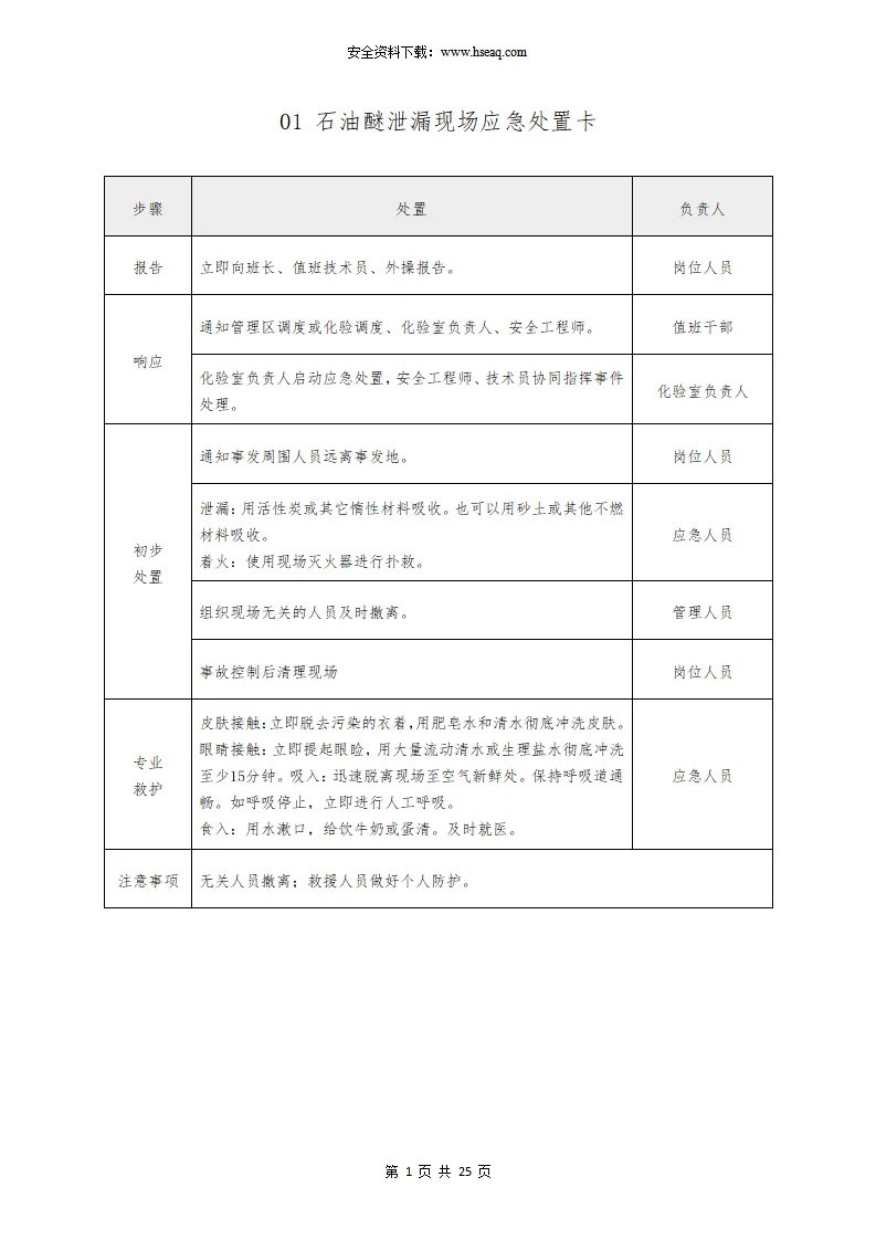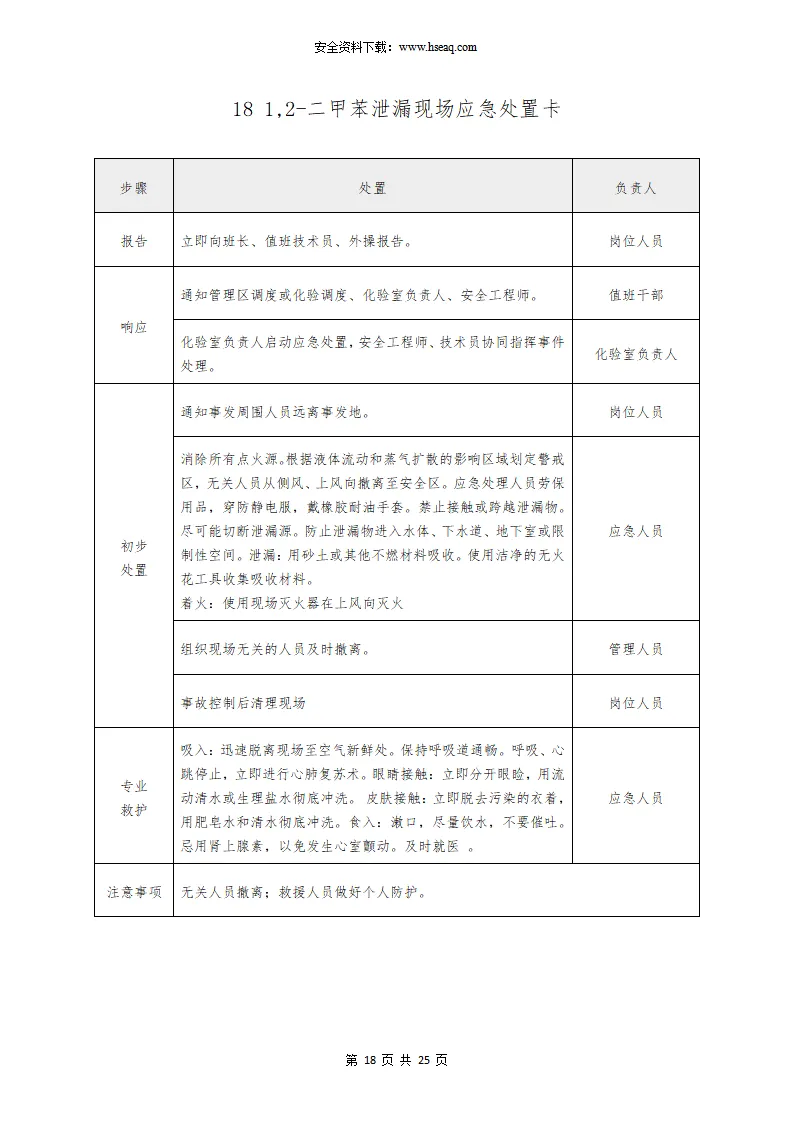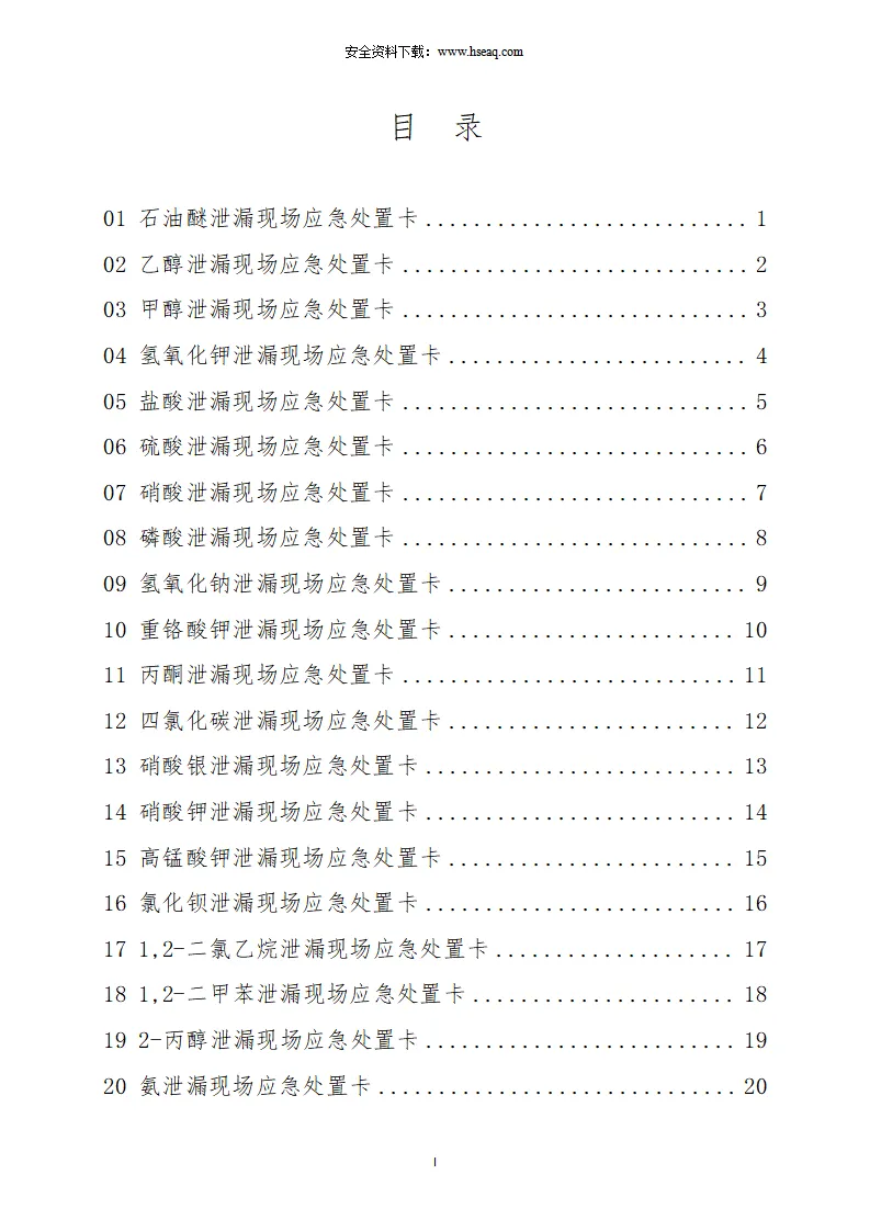 Word | 常见危险化学品泄漏现场应急处置卡(参考模版)