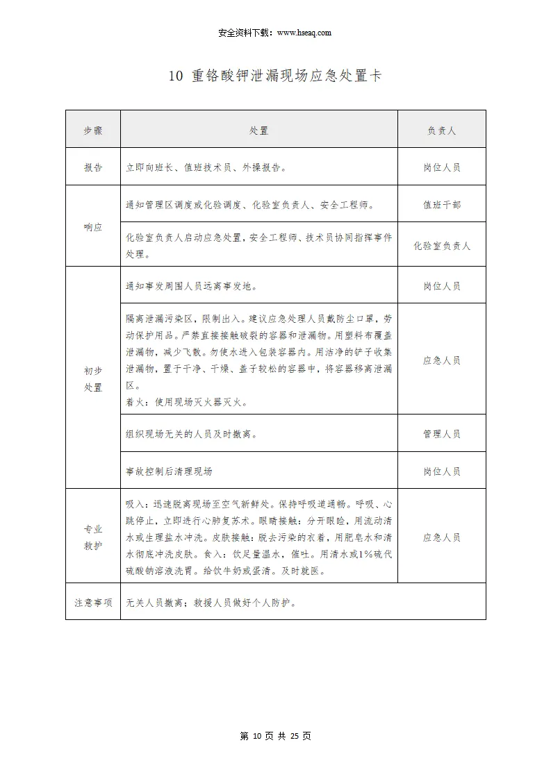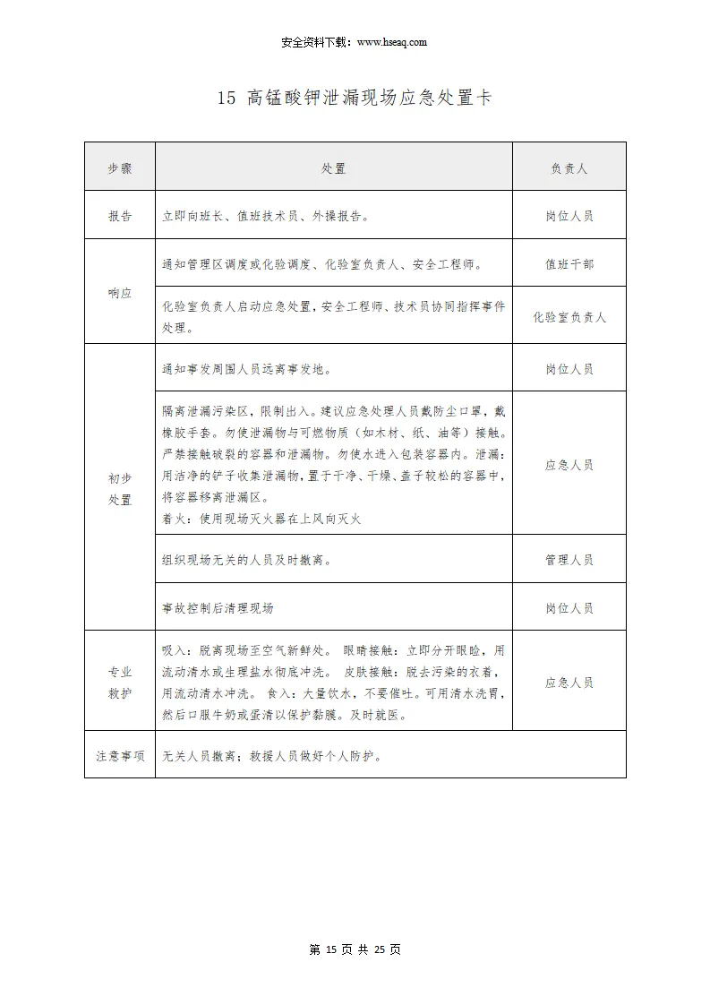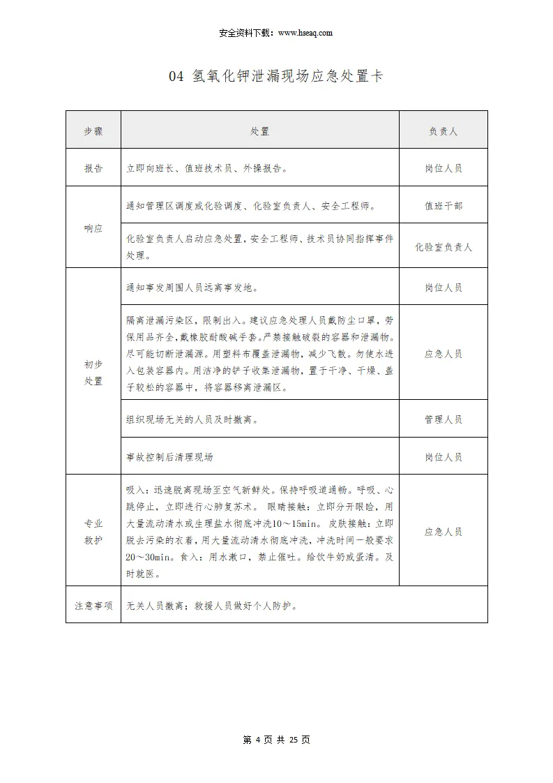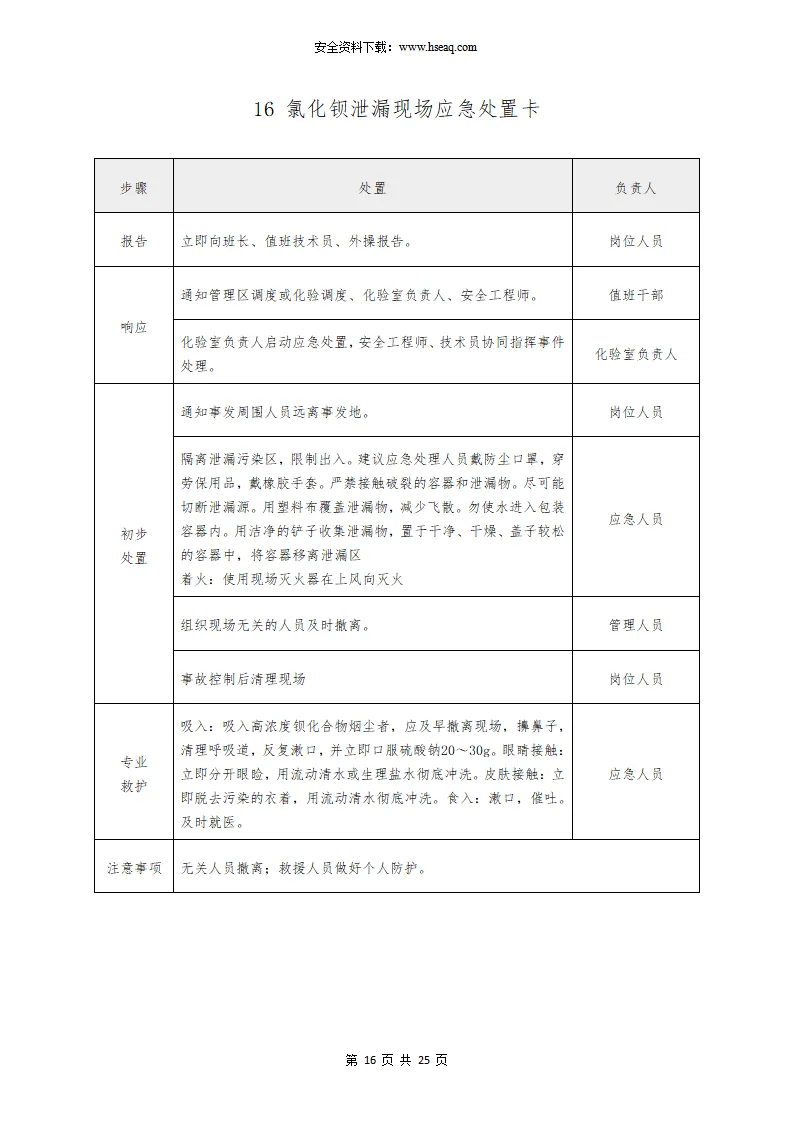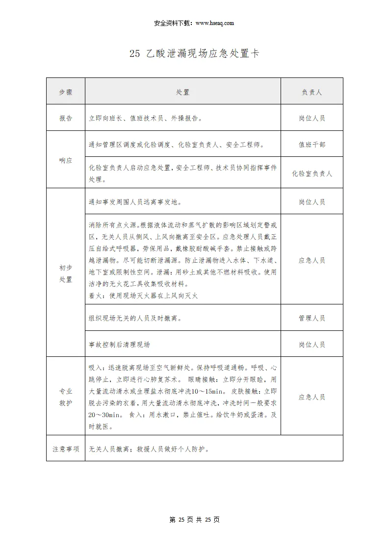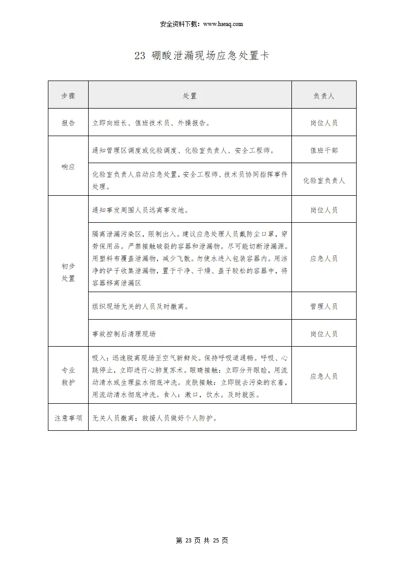 Word | 常见危险化学品泄漏现场应急处置卡(参考模版)