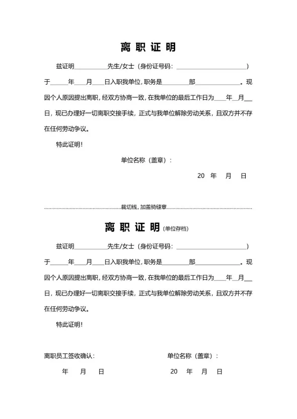 员工离职证明模板范文(word电子版)【免费保存下载】 本文内容分享员工离职证明模板范文(word电子版) 👇网盘打包下载👇 https://pan.quark.cn/s/fa1ff346f26b #离职证明样板 #免费离职证明模板 以下是部分预览图展示 以上仅为部分预览图 点击左下方“阅读原文”,获取完整版
