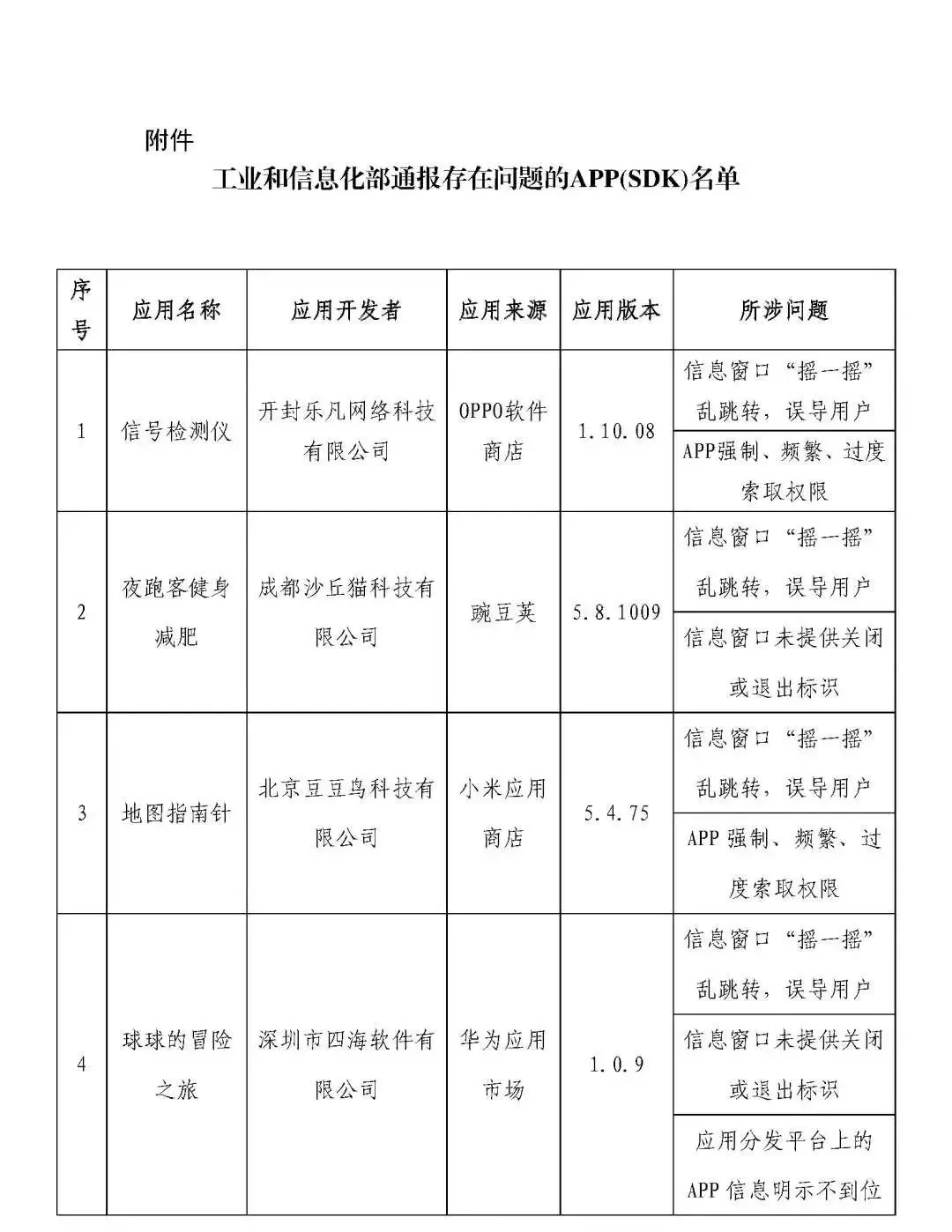 附件:工业和信息化部通报存在问题的APP(SDK)名单