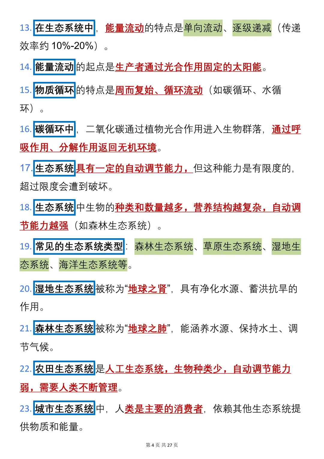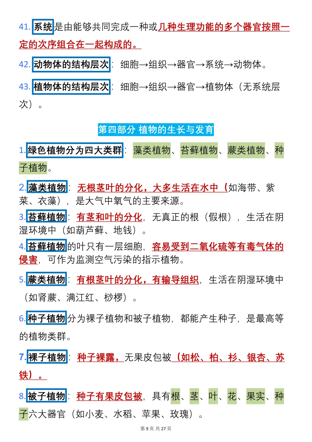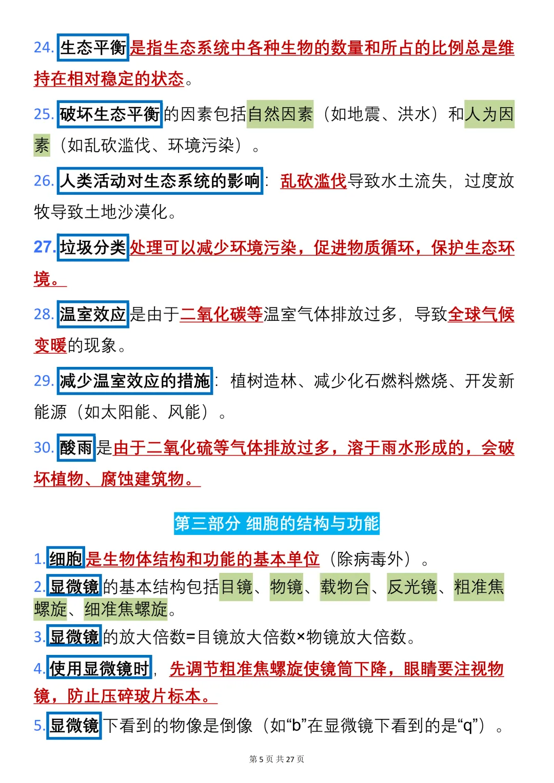 中考生物必背【300条核心基础知识】,可打印 快收藏 初中生物提分有妙招,核心关键在 “核心基础知识点”。核心基础知识点的积累是根基,尽管题型灵活多变,答题核心的本质始终不变。 今天给大家整理了中考必备的【中考生物最全基础知识总汇(全年级覆盖)】,不管题目如何变式,都能让表达更出彩,轻松拿下高分! 因篇幅有限,点击我的头像私信我回复 “资料获取” 就可以领取 word 电子版。以下是部分资料内容,完整高清版的发送私信即可。 受文章篇幅限制,仅能分享部分内容~ 领取方法: 1、先下方点👍“赞”➕♥“推荐,然后关注下方公众号 2、在对话框中回复“ 资料获取 ”即可获取完整电子版 更多资料及学习方法持续更新中……