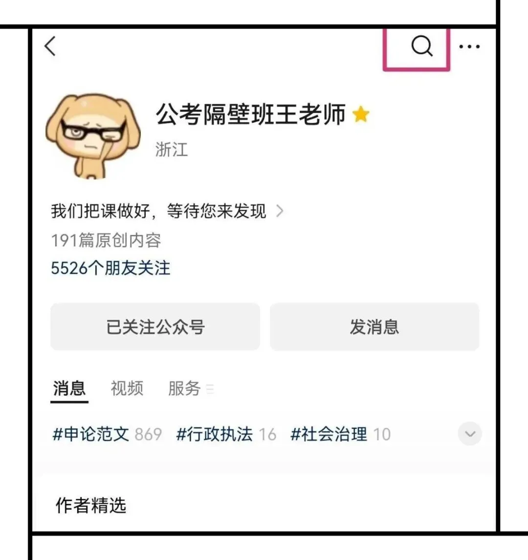 【在公众号主页找到“放大镜”搜索功能,点击输入想找的文章关键词,例如“生态”“文化”“行政执法”……这样就可以轻松从我已经分析过的1000多篇优质申论范文中找到相关文章。】