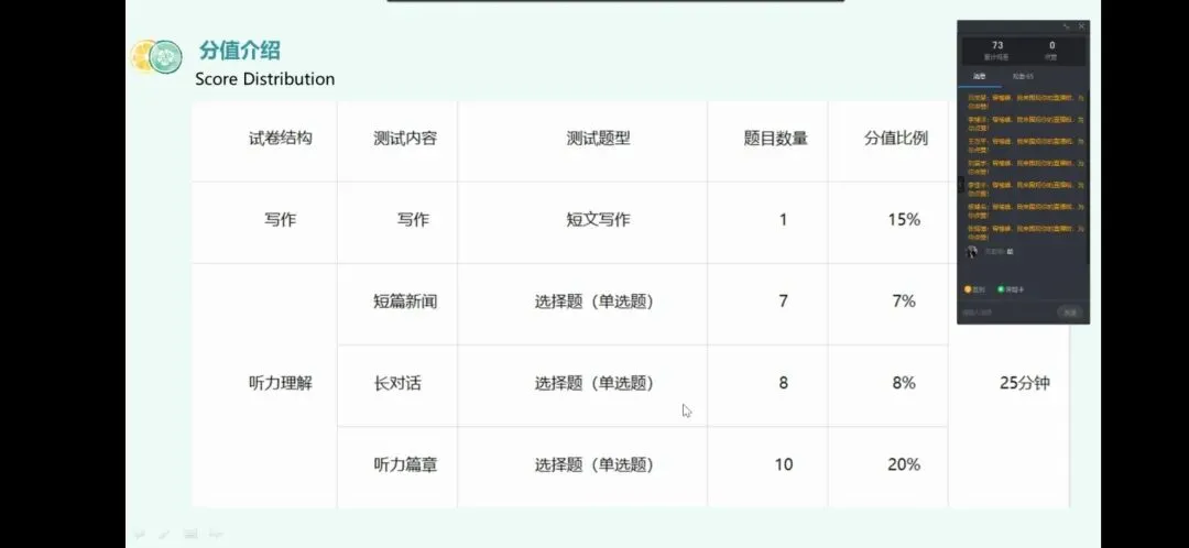 模拟考试后,软件学院特邀请英语1801班曾榆峰同学利用钉钉APP开展线上英语学习经验交流。曾榆峰同学结合自身经历与学习经验,从四级考试题型赋分、做题技巧、考试心态等方面进行总结归纳,做了生动而详尽的分享。