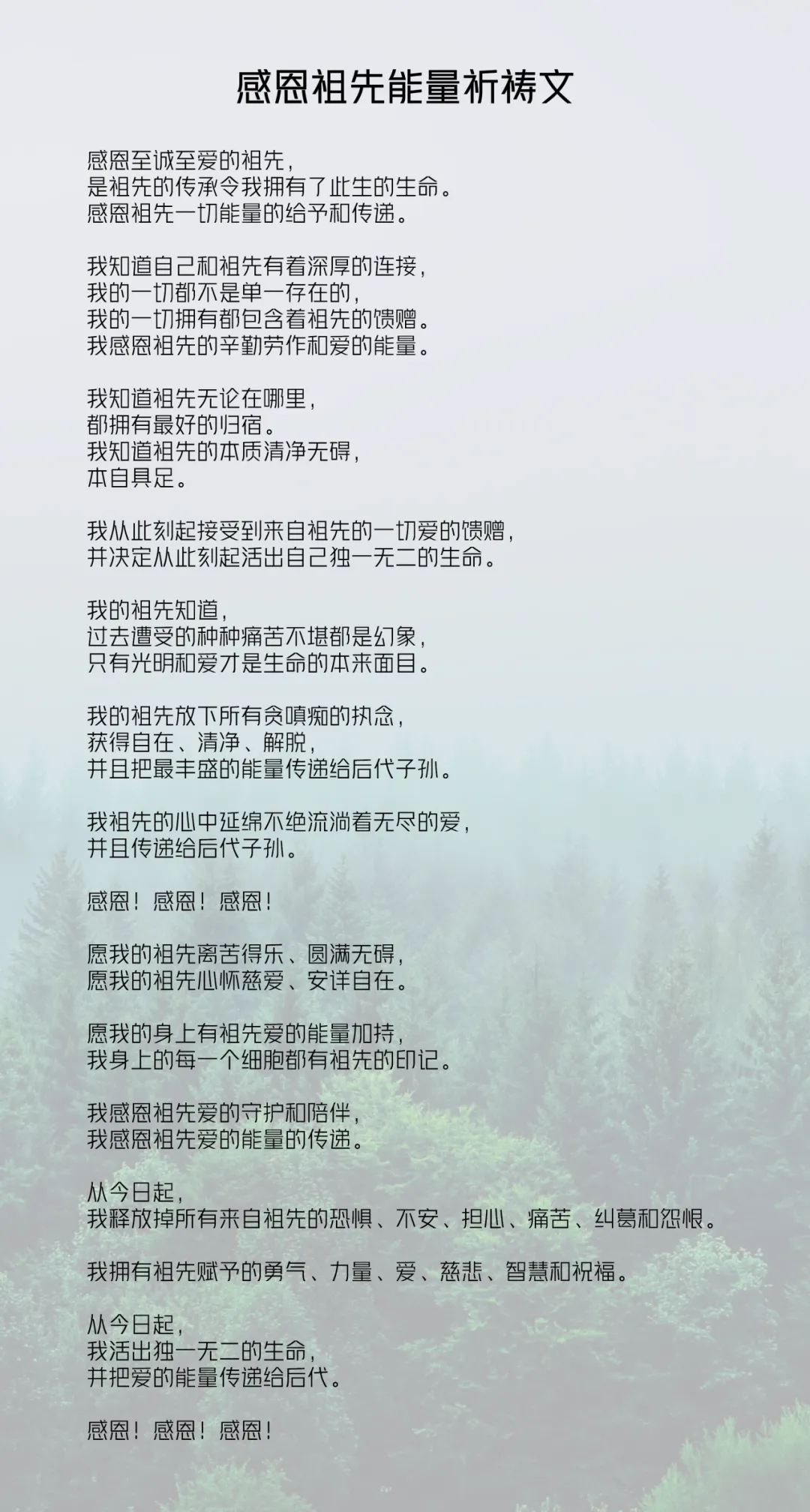 可以诵读感恩祖先的引导文三遍。