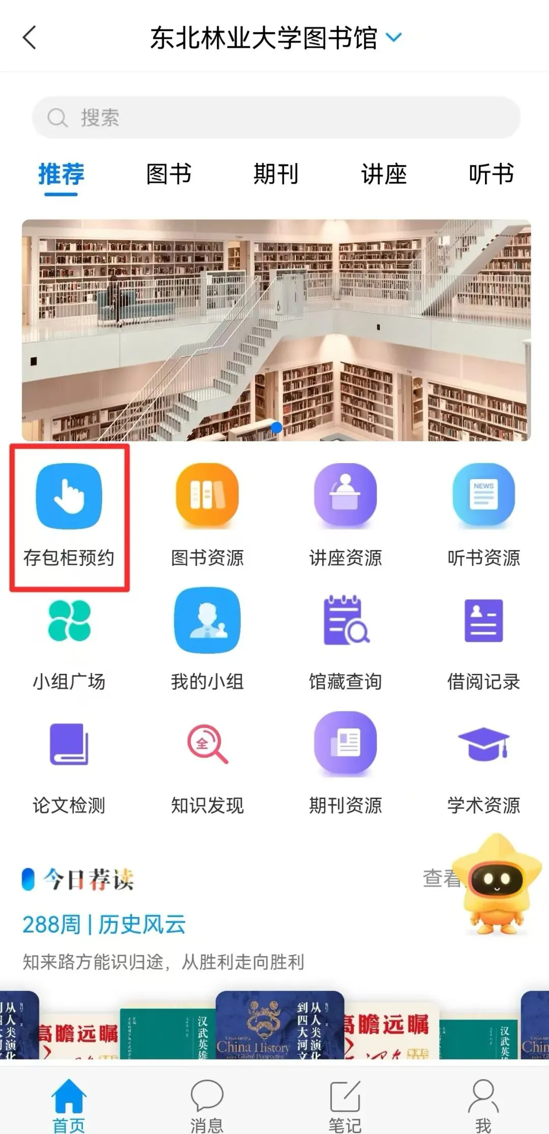 进入图书馆主页存包柜预约模块