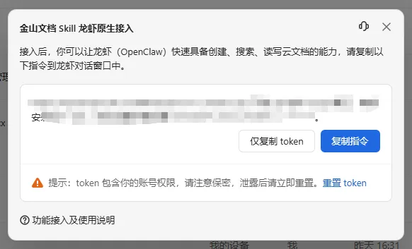 此次集成的亮点在于其安全性设计。作为官方推出的技能包,它在文件操作权限上设置了严格限制,避免了误删重要文档。所有数据传输均通过HTTPS加密,用户Token仅在本地存储,有效保障了企业级用户的数据安全需求。