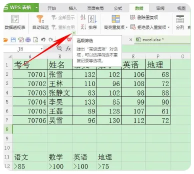设置好筛选条件之后,我们就可以打开高级筛选对话框了。具体操作步骤如下: