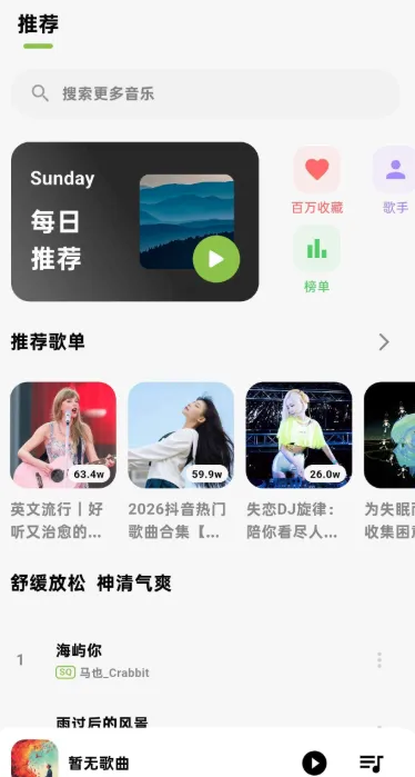📥 歌曲免费下载,离线随时听:遇到喜欢的歌,可以直接免费下载到手机里。这样就算没网络,在路上、地铁里也能随时听,不用心疼流量,超级实用。