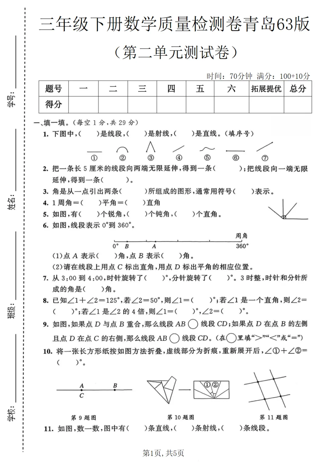 【免费下载】三年级(下)数学 第二单元质量检测卷《青岛63版》,PDF电子版,可打印