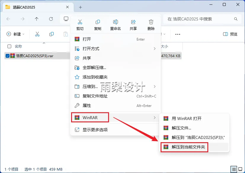 1.右键【下载的安装包】选择【解压当前文件夹】