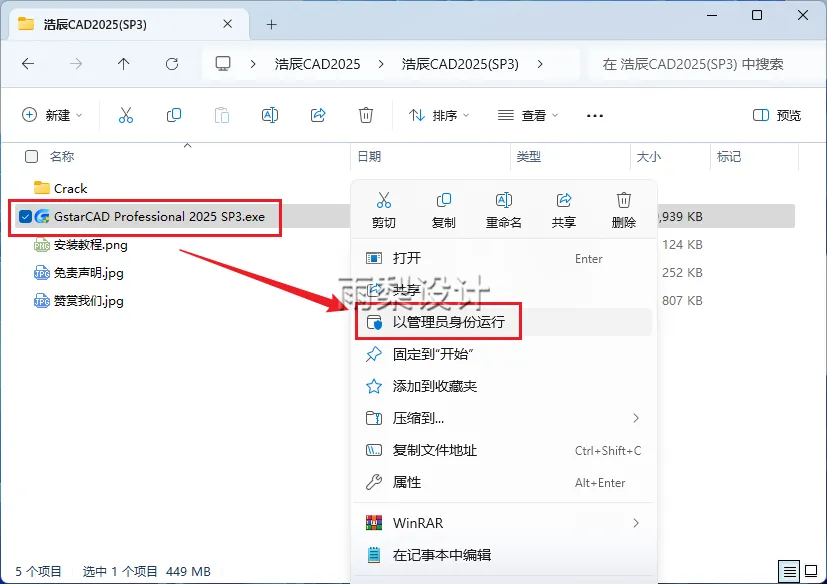 2.右键【GstarCAD Professional 2025 SP3】选择【以管理员身份运行】