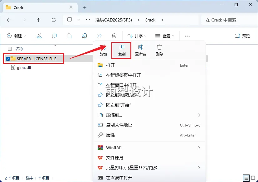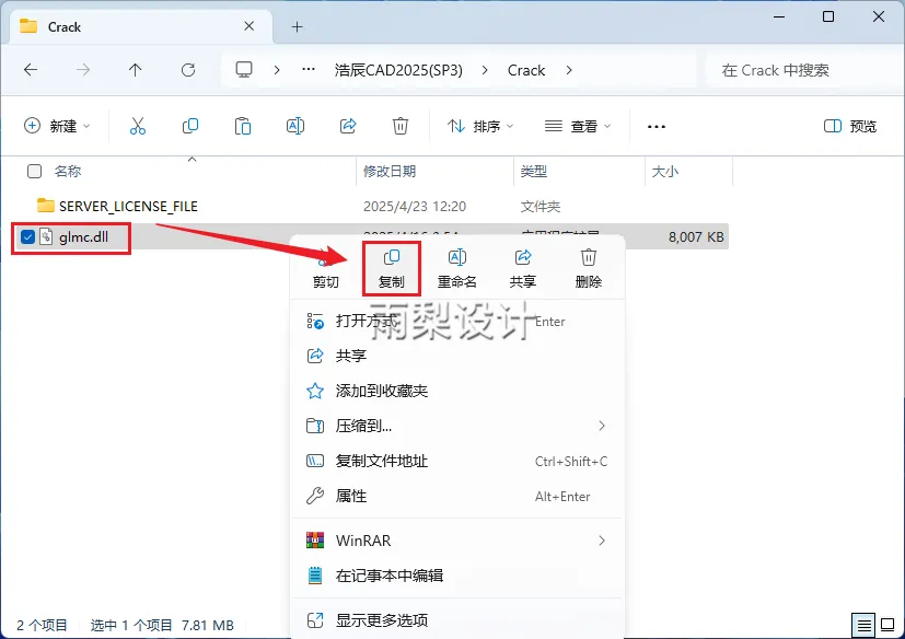 15.返回安装包下的【Crack】文件夹;右键【glmc.dll】选择【复制】