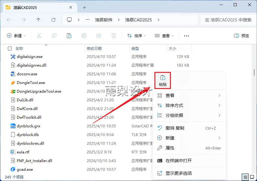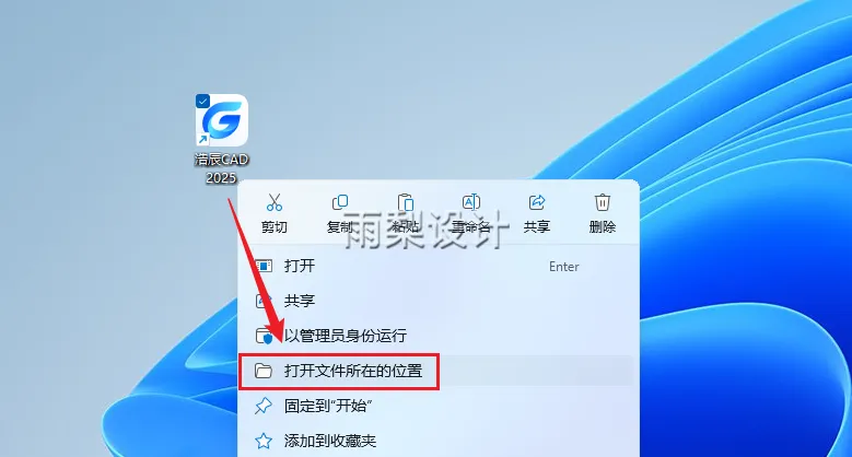 16.右键【浩辰CAD2025】选择【打开文件所在的位置】
