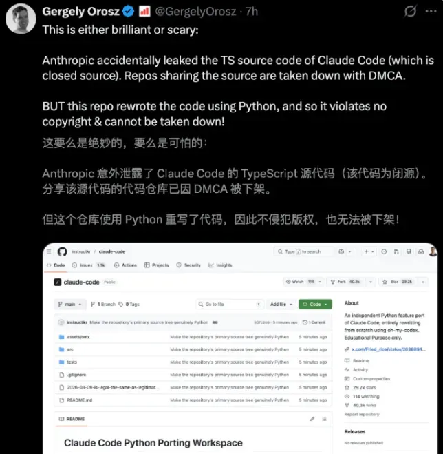 “事实上,这份源代码的详尽程度令人震惊,整个仓库目录架构、功能模块分得明明白白,甚至连开发工程师手写的原生注释都被全部还原。”KK称,“做技术的都明白这个代码的含金量,有些人已经跃跃欲试全盘照搬这份代码的底层逻辑,不久的将来如果你看到很多类似Claude这样智能的AI工具,也请不要惊讶。”