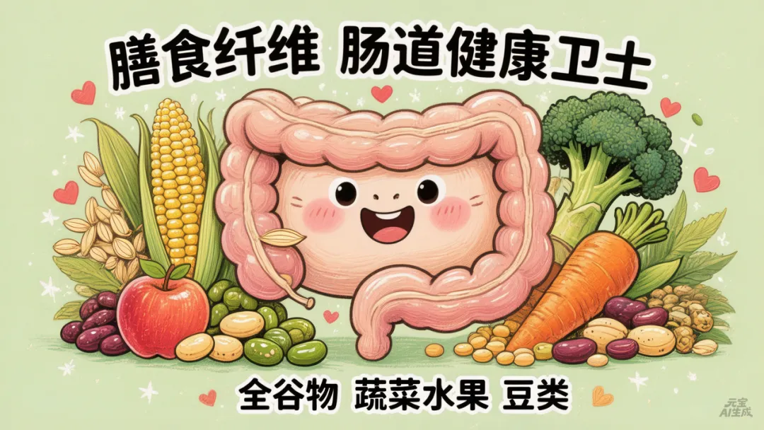 总的来说,适量的膳食纤维一方面是健康肠道,另外一方面可以帮助保持体型,避免便秘,还可以预防三高啊,尤其对于那个血糖方面的控制也会有帮助。