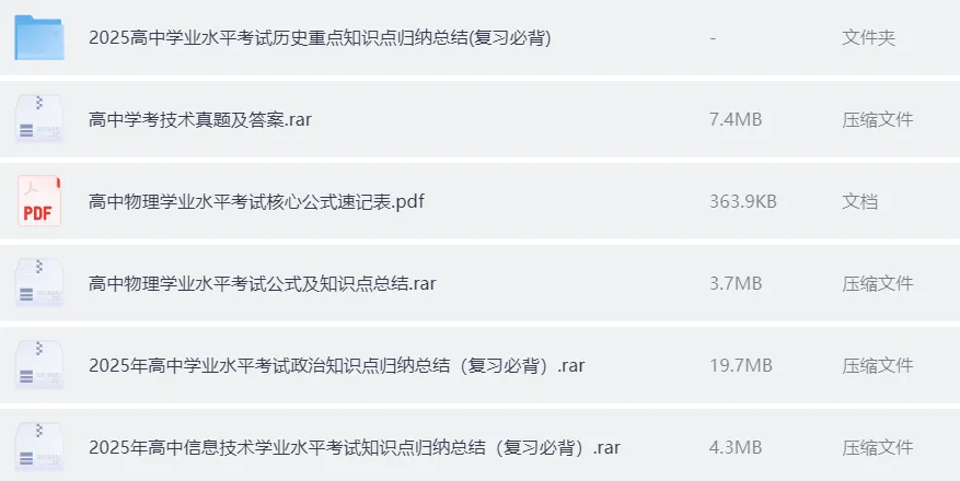 2025学考知识点归纳总结 免费分享 可下载
