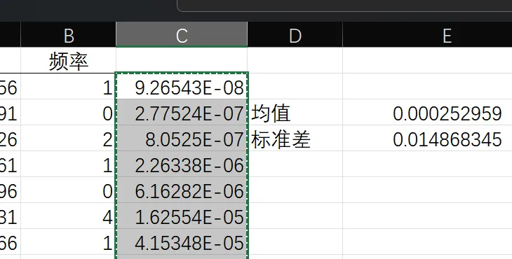 标准差函数: =STDEV.S(第一个数:最后一个数)