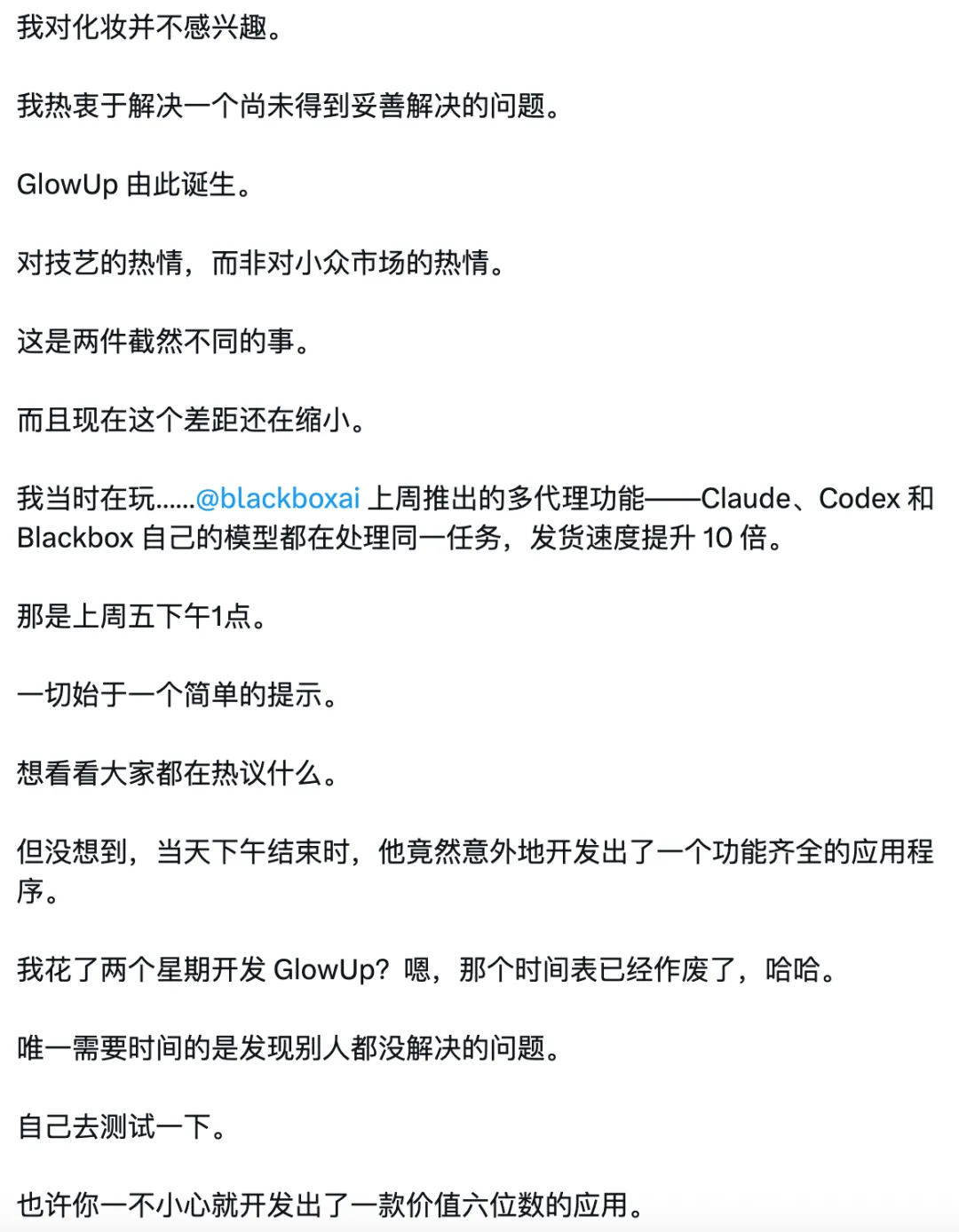 每周工作60小时以上,在做出 GlowUp 之前,已经做了12个APP了。