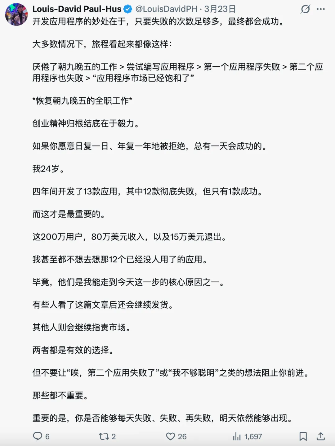 Louis开发APP的秘诀就是只要失败的次数足够多,最终都会成功。