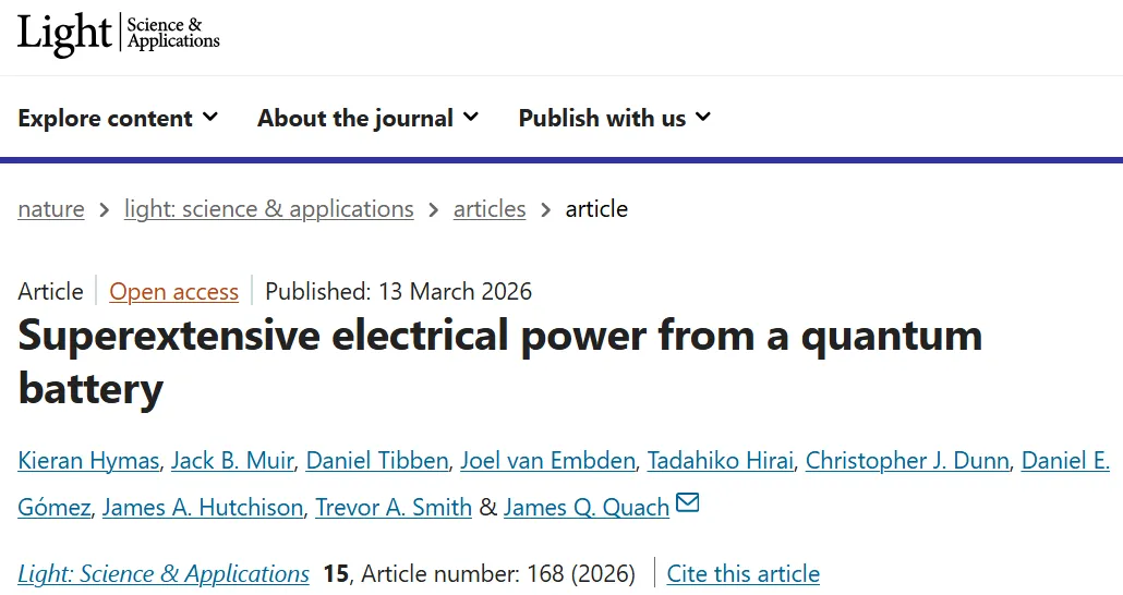 2026 Light: Sc & App | 量子电池实现超广延性电功率输出