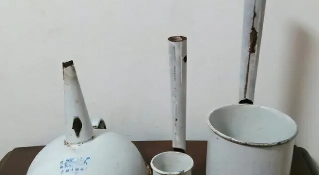这是一整套搪瓷工具,专给卖散酒和酱油的师傅用,一字排开,大小都有,提子装酒,漏斗灌瓶,一来一回全靠手腕稳,上小学那会我还绕着柜台转,偷看大人挑选,最后提着满满一壶新鲜带回家,现在全变成超市货架上的瓶装了,再没人拿提子去店里打酒了。