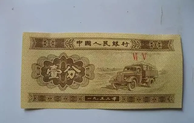 这张浅黄老票,是一分钱纸币,看着破,可那时一分钱也能买糖吃,摊贩的兜里一把硬币,咬过糖的孩子到老也忘不了那种甜,有人还收上一摞,怕以后再也见不到,现在一辆车动辄几十万,曾经一分钱能买半根冰棍。