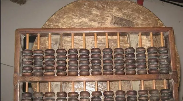 十根横档黑溜溜的算盘珠,这东西一敲出来噼啦响,家里算账全靠它,一上一下口诀还在耳朵里转,有本事的老人,一只手拨珠一只手记账,算盘打得如飞,身边的小孩光会玩不会算。