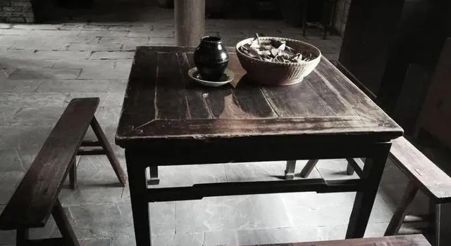 桌面正方,腿脚粗,农村人叫八仙桌,一家人吃饭比肩而坐,晚上还会围着打牌、聊天,城里现在想找到一只老八仙桌比登天还难,老房拆了都进了木材厂。