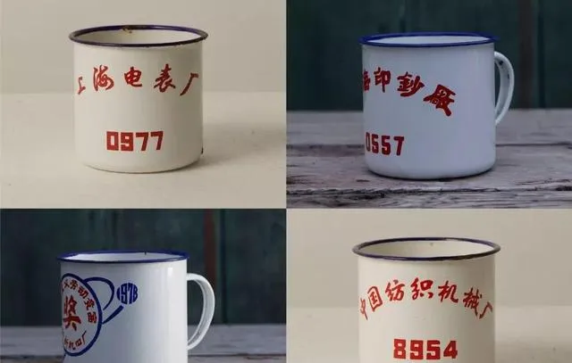 白底红字带盖的叫搪瓷杯,工厂奖品,老爸单位发的,掉漆有印子不舍得扔,泡茶喝水用了一辈子,咣当一掉地,摔出缺口还要舍不得丢。