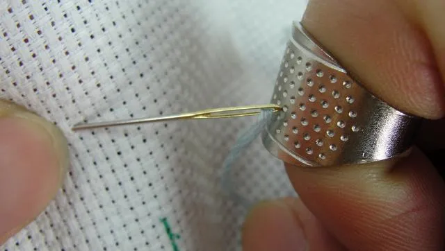 手指头上戴着的小家伙叫顶针,铁打或者铜打的,表面全是小疙瘩,防滑又好使,妈妈缝衣裳的时候一戴顶针,指头就不怕扎,推个针眼一用劲不带滑,针线活儿里它就是保护伞,小时候学着缝扣子,一没顶针,指头戳红了眼泪都想出来,妈妈递过来只说了一句:“有了它才不疼。”