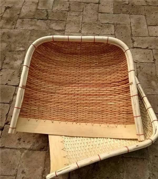 竹条编的大扁篮叫簸箕,看着样式简单,用起来有说头,粮食、瓜子都拿大簸箕颠来倒去的,杂质石子全颠飞了,赶上秋天晒红薯片,铺上就是一大片,家里地窖原来没少堆这一摞,现在买东西现成的多,簸箕在家基本找不到影子。