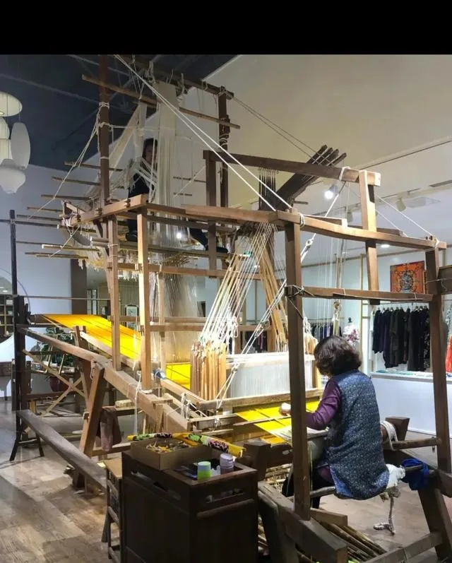 这个庞然大物叫纺织机,老一辈都叫机杼,全身上下都是木头,横七竖八的梁板,绳子挂得满当当,织布的梭子一来一回钻着,筒子绒线卷得大大的,坐筒底的那个人脚忙手也不停,咔嗒咔嗒声音敲打在屋子里头