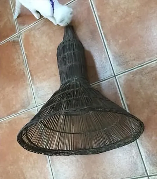 这个细竹编出来的像风车屁股的小东西,叫鱼篓子,装鱼虾、青蛙、小鸡小鸭都用得上,油纸裹一裹还能装菜籽油,小时候下河摸鱼捞虾,把鱼篓挂在腰间,扑腾几下就有收获,农忙时还能当种子兜,谁家孩子没背着这样的篓子跑过田间地头。
