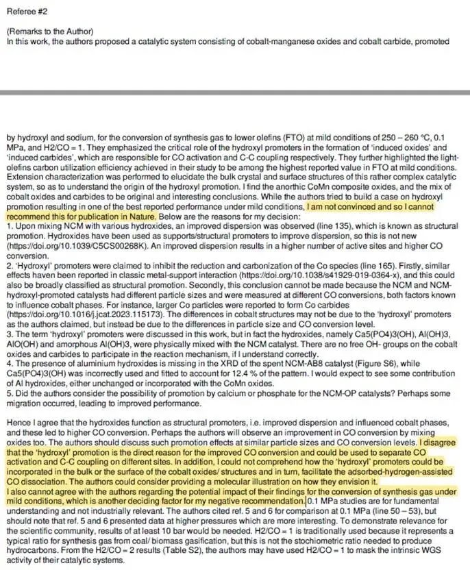 值得注意的是,从Peer review文件可以看到,该研究工作在投稿阶段经历了多轮严谨的学术评议。例如,审稿人2不认同“羟基”促进作用是提高一氧化碳转化率的直接原因,并且认为它可用于将一氧化碳活化和碳–碳键形成过程分别在不同的位置进行分离。此外,审稿人不明白“羟基”促进剂是如何能够被整合到钴氧化物/结构的主体部分或表面的,进而促进吸附氢辅助的一氧化碳解离的。另外,审稿人也不同意作者关于其研究结果对在温和条件下转化合成气的潜在影响的观点。