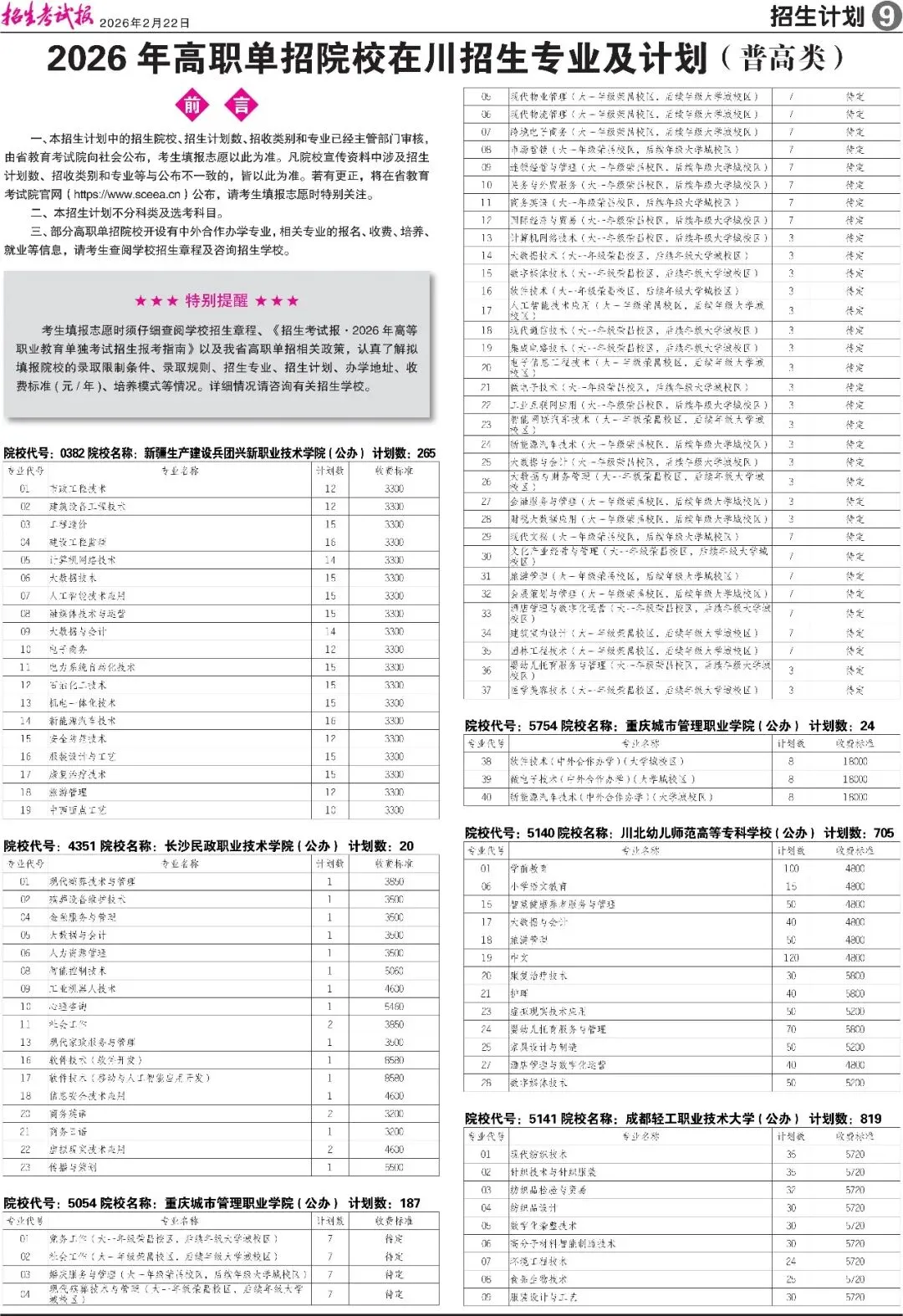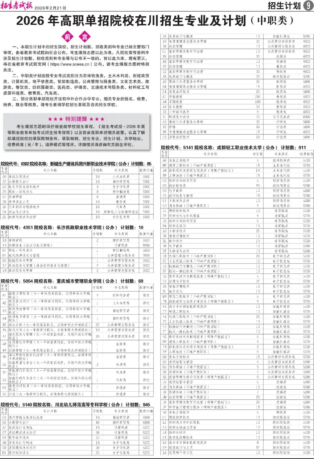 四川省2026年高职单招招生考试报—电子版 四川省教育考试院官网发布四川省2026年高职单招招生考试报—电子版,没有购买考试报纸质版的同学可以进入四川省教育考试院官网进行查看电子版报纸: 由于篇幅较大,公众号不易展示,请大家点击本文末尾的蓝色字“阅读原文”进入四川省教育考试院官网进行查看 来源:四川省教育考试院官网