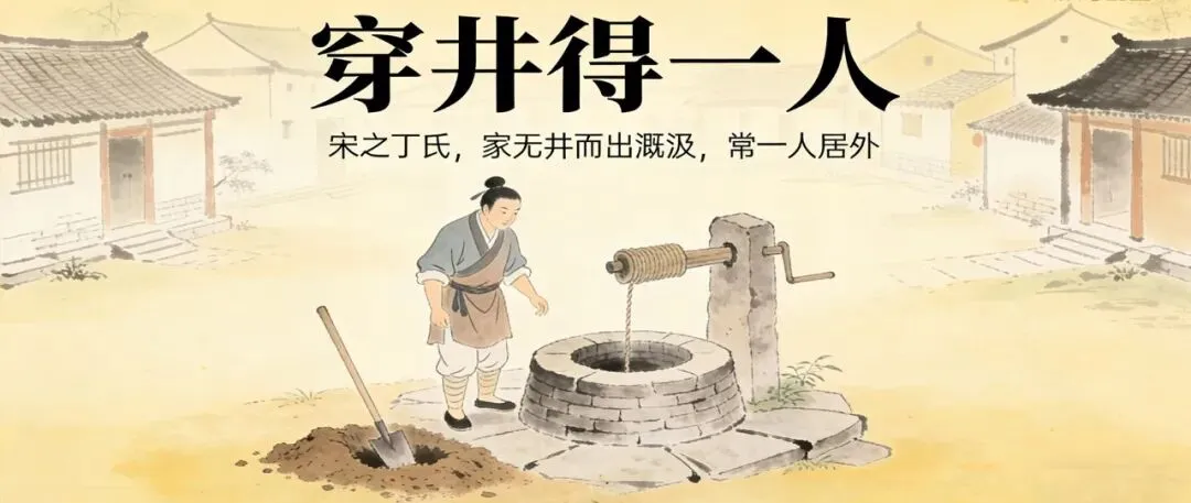 宋国有一户姓丁的人家,家里没有水井,需要出门打水浇田,因此经常要派一个人住在外面(专门负责打水)。等到他家挖了一口井之后,便告诉别人说:“我家挖井得到了一个人。”