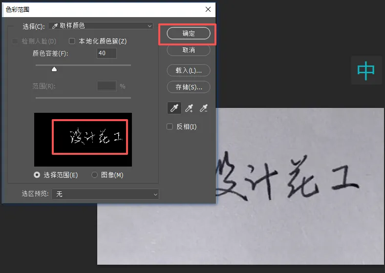 这时候光标会变成吸管形状,用吸管点击名字,可以多点击几次,直到预览框里清晰显现名字,然后点击确定。