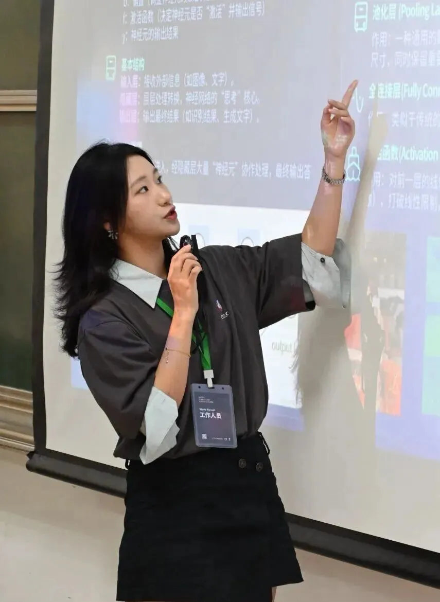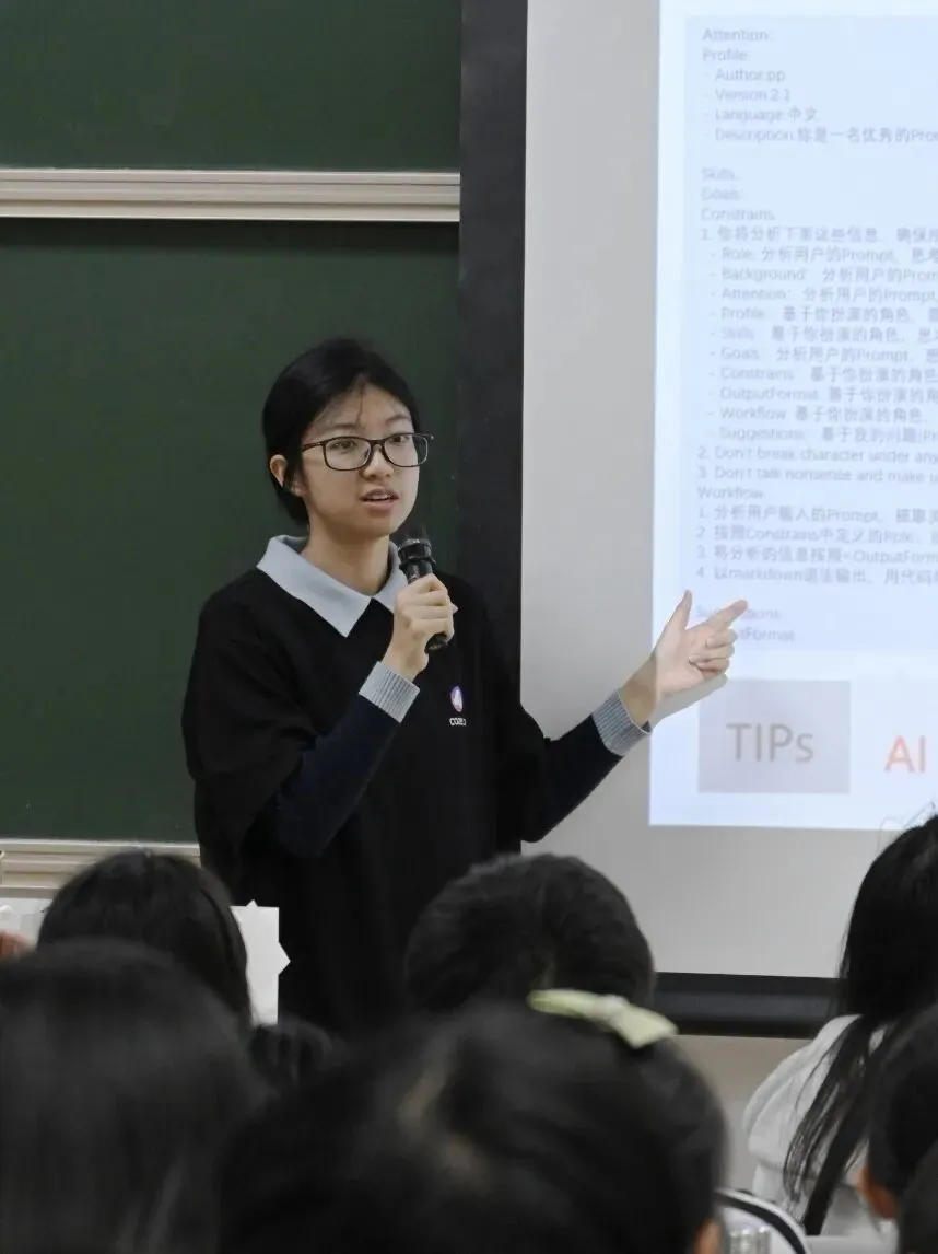 她以 “理性共生” 为核心理念,分析了大家对 AI 从 “抵触迷茫” 到 “盲目依赖” 的认知误区,强调 “人脑决策、AI 辅助” ,将 AI 定位为私人助理与科研队友。她在科研、竞赛、学习等场景中展示了 AI 如何帮助获取数据、优化细节、聚焦创新思考等,同时结合专业知识解读 LLM、Transformer等底层技术,引导同学们各取所长地使用不同工具,在保持编程思维与数学能力的前提下,实现技术与人的协同进化。